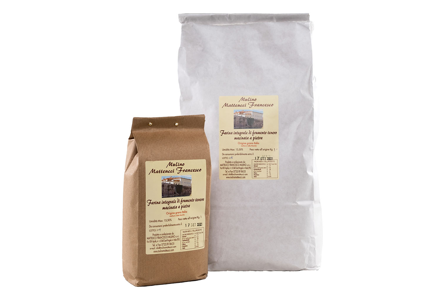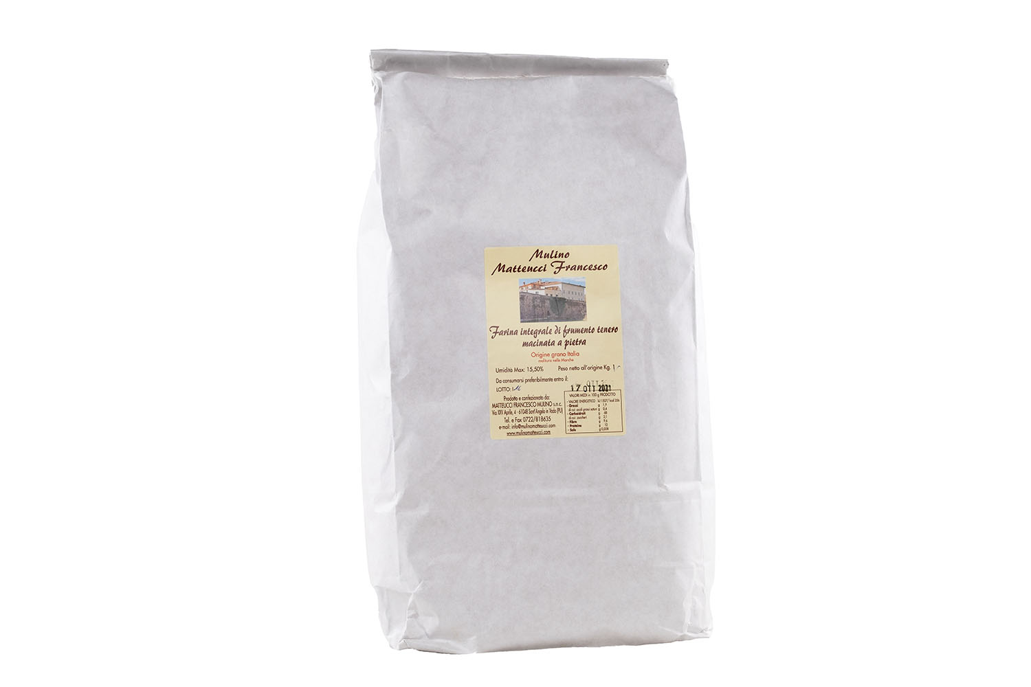 La farina integrale è ideale per la preparazione di pane, pizza, dolci ricchi di fibre. La macinazione avviene a pietra ed è derivante da frumento nazionale, quest’ultimo prima della macinazione viene passato a un vecchio sistema di lavaggio del frumento per poi essere macinato.