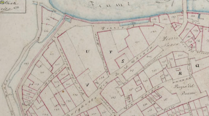 Dal ponte in questa foto c’è una specie di arco, quello era la trasversa che alimentava il Mulino dei Pierini ed al suo scarico c’era la traversa che alimenta il Mulino del Conte che ora non c’è più. Ancora oggi sono visibili le buche di sostegno delle travi della traversa sullo scoglio.